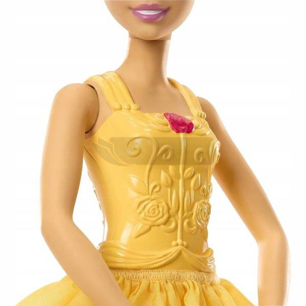 Ta modna lalka ma na sobie spódniczkę z falbanami w charakterystycznym dla Belle kolorze i ma baletowy kok oraz ruchome ręce i nogi.