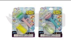 Kolorowa maszynka w kształcie trąbki wraz z płynem do wytwarzania baniek mydlanych. W zestawie także miseczka gdzie uprzednio trzeba zanużyć maszynkę, a następnie cieszyć się bańkami. Zabawka dla dzieci od 3 lat. Podane wymiary stanowią wymiar opakowania. Zabawka zapakowana w kartonową podstawkę z przeroczystym kloszem. Produkt występuje w kilku wersjach kolorystycznych, wybierany losowo. Cena dotyczy jednej sztuki.