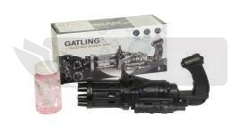 Zabawka pistolet do wytwarzania baniek mydlanych z płynem do baniek. Wystarczy przycisnąć przycisk i powstaną bańki. Produkt działa na baterie AA. Baterie nie są załączone do zabawki. Zabawka zapakowana w kartonowe opakowanie. Zabawka dla dzieci od 3 lat. Podane wymiary są wymiarami opakowania.
