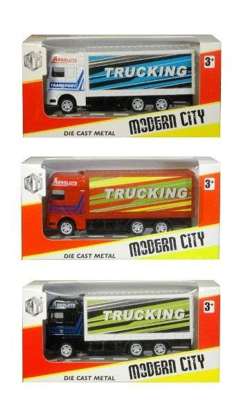 Plastikowo-metalowa ciężarówka do zabawy dla dzieci. Pojazd działa na napęd cierny. Produkt występuje w kilku wersjach kolorystycznych, wybierany losowo. Cena dotyczy jednej sztuki. Zabawka dla dzieci od 3 lat. Podane wymiary są wymiarami opakowania. Zabawka zapakowana w kartonowe opakowanie z przezroczystym okienkiem.