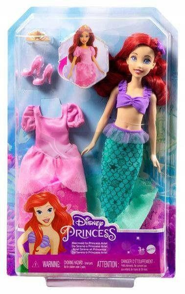 Poznaj serię niepowtarzalnych lalek Disney Princess. Disneya Nowość Księżniczka Disneya Ariel wyrusza w podwodną przygodę. Przeżyj ponownie magiczną przemianę swojej ulubionej syreny w księżniczkę z tą lalką Disney Princess. Ariel ma płetwę ogonową z miękkiego materiału z błyszczącym metalicznym nadrukiem, którą dzieci mogą zdjąć i ubrać lalkę w różową sukienkę księżniczki, aby zmienić ją z syreny w księżniczkę. Doskonały prezent dla dzieci, które mogą odtwarzać swoje ulubione momenty z filmu lub wymyślać własne opowieści.