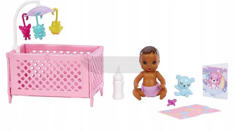 LALKA BARBIE SKIPPER USYPIANIE MALUSZKA łóżeczko HJY34