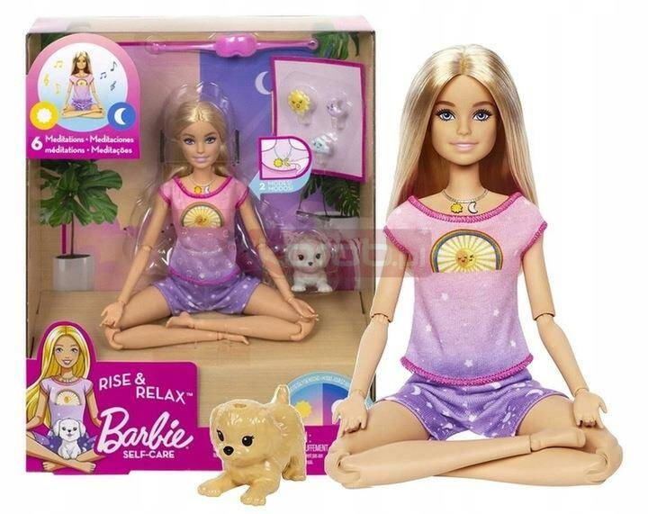 Dzięki w pełni ruchomej lalce Barbie Wellness Meditations dzieci mogą zrelaksować się w ciągu dnia i lepiej spać w nocy, jednocześnie ćwicząc uważność i medytację Z lekką i kojącą muzyką w dwóch różnych trybach: dziennym i nocnym Naciśnij słońce na naszyjniku Barbie, aby włączyć tryb dzienny z muzyką do ćwiczeń rozciągających i oddechowych Naciśnięcie księżyca na naszyjniku aktywuje tryb nocny dla rozluźnienia mięśni i snu Oprócz lalki w zestawie znajdują się również akcesoria, takie jak maska ??na oczy i szczeniaczek z trzema różnymi emotikonami, które dzieci mogą przyczepić, aby wyrazić swój nastrój Zestaw ten to najlepszy prezent dla dzieci powyżej 3 roku życia, szczególnie dla tych, którzy lubią dbać o siebie i swoją kondycję