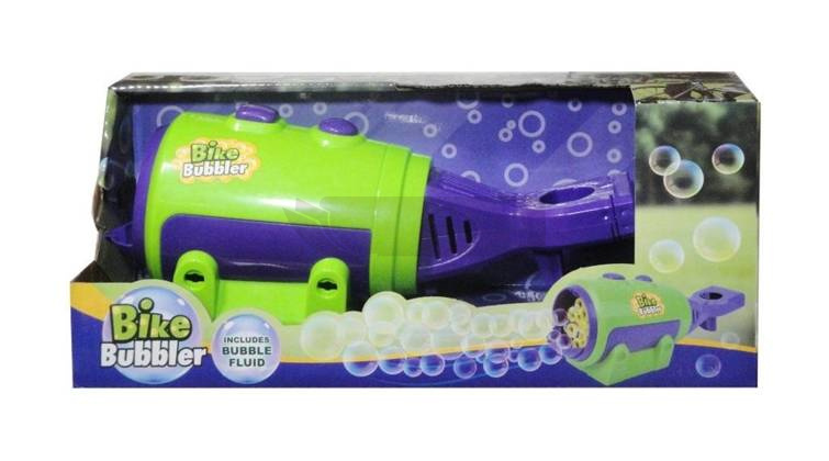 Kolorowa maszynka wraz z płynem do wytwarzania baniek mydlanych. Zabawka działa na baterie typu AA. Baterie nie są załączone do zabawki. Zabawka dla dzieci od 3 lat.