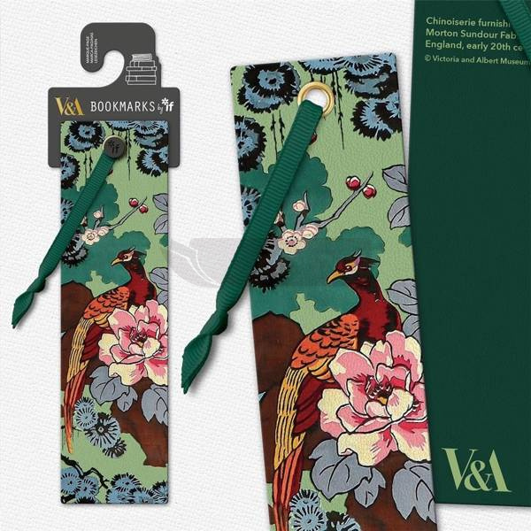 Skórzana zakładka do książki ze wstążką. Piękny wzór z muzeum Wiktorii i Alberta.