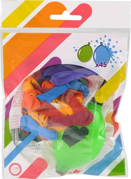 Zestaw 45 sztuk różnokolorowych balonów z pompką do napełnienia wodą. Wymiar balonu ok. 25 cm.