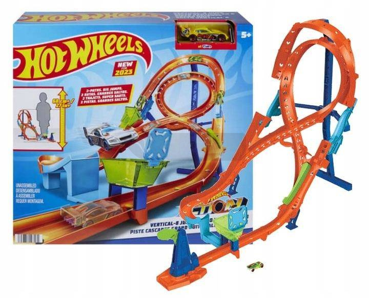 Mierzący ponad pół metra wysokości zestaw torów Hot Wheels® Vertical-8 Jump oferuje dwie różne ścieżki do wyczynów kaskaderskich i wyścigów. Wybierz jedną z 2 różnych tras, z których każda ma swoje unikalne cechy, aby ścigać się i wykonywać akrobacje w zestawie torów Hot Wheels® Action Vertical-8 Jump. Dostosuj przełącznik, zanim załadujesz wyrzutnię i wyślesz dołączony samochód Hot Wheels® na tor o wysokości ponad pół metra. Jedna ścieżka wysyła samochód przez krętą figurę 8, podczas gdy druga wysyła go przez zewnętrzny tor w kształcie litery U, który ma 2 skoki kaskaderskie na środku toru. Zestaw składa się w celu łatwego i wygodnego przechowywania. Punkty łączenia torów pozwalają dzieciom łączyć go z innymi torami do budowy długich wyścigów i akrobacji. Zestaw zawiera 1 samochód Hot Wheels®, co czyni go wspaniałym prezentem dla dzieci w wieku od 5 lat