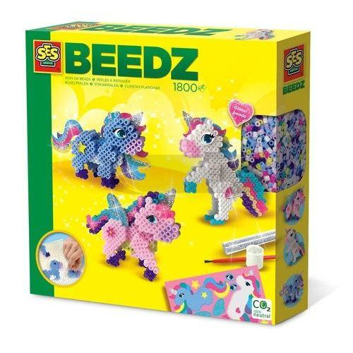 SES to firma produkująca zestawy kreatywne, m.in. wielobarwne koraliki i podstawki z wypustkami, dzięki którym dziecko może ułożyć proste oraz skomplikowane wzory. Z tego zestawu stworzysz jednorożce 3D. Zawiera 1800 szt. koralików.