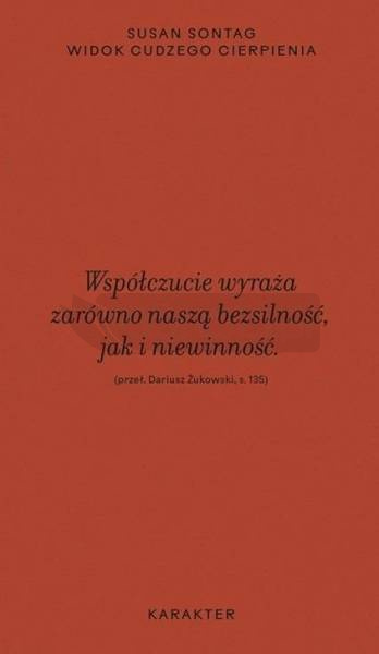 Rozwinięcie i uzupełnienie O fotografii. Autorka powraca do wielu kwestii poruszanych wcześniej, skupiając się jednak na zagadnieniu przedstawiania obrazów cierpienia w mediach, zwłaszcza w fotografii wojennej. Historyczny kontekst, w jakim powstawała książka (niedługo po ataku na World Trade Center), nie pozostał bez wpływu na charakter i temperaturę wywodu. W świecie, w którym codziennie jesteśmy zalewani potokiem obrazów pełnych okrucieństwa, w świecie po ludobójstwie w Rwandzie i po wojnie w byłej Jugosławii, a zarazem w świecie, w którym technika umożliwia prowadzenie wojny na odległość, przedstawianie obrazów cierpienia rodzi nowe pytania i problemy etyczne. Sontag bezlitośnie tropi hipokryzję Zachodu i stosowanie podwójnych standardów w pokazywaniu nieszczęścia, bólu i śmierci. Zastanawia się nad rolą fotografii w kształtowaniu tak zwanej zbiorowej pamięci i stosunku do historii. W centrum rozważań stawia tym razem nie fotografa, lecz widza, który musi określić swoją postawę wobec widoku czyjegoś cierpienia; żadne spojrzenie nie jest niewinne.