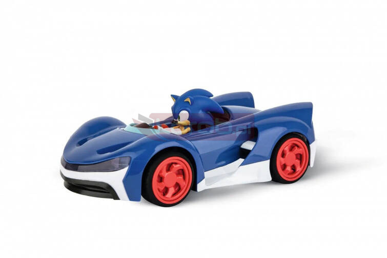 Zdalnie sterowany samochód marki Carrera z kultowym niebieskim jeżem Sonic.