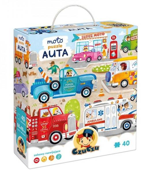 Ciekawy świata przedszkolak nieustająco doskonali swoje umiejętności i poszerza wiedzę, co w naturalny sposób przychodzi mu przez zabawę. Ma też swoje zainteresowania, a jednym z nich są ulubione pojazdy: samochody, ciężarówki, wozy strażackie, karetki, śmieciarki Doskonale to rozumiemy, dlatego Moto puzzle Auta zgromadziły wszystkie ulubione wozy znalazły się na jednej ilustracji! Z tą piękną układanką możecie bawić się na wiele sposobów i krok po kroku doskonalić kompetencje.