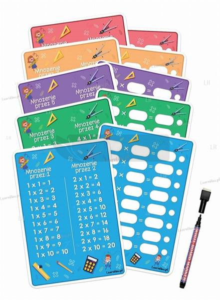 Plansze edu A4 - tabliczka mnożenia +pisak 5 kart