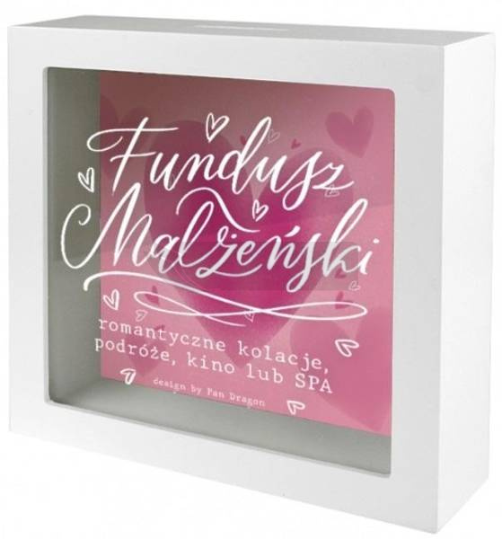 Skarbonka wykonana z MDfu wraz ze szklaną szybką oraz napisem wyznaczającym jasny cel.