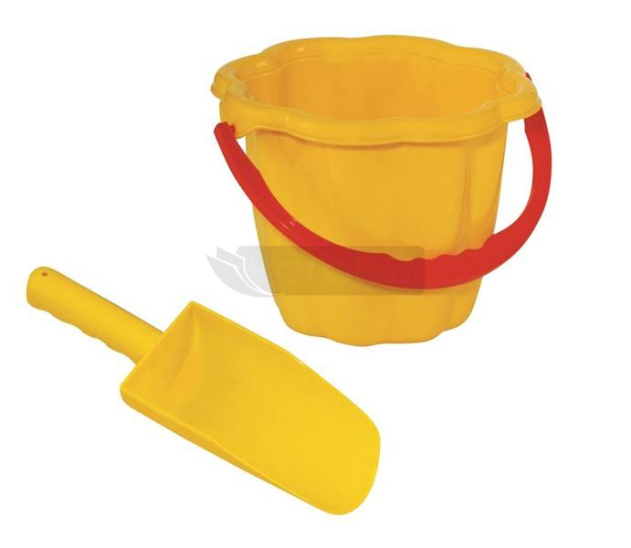 Żółte wiaderko z łopatką do zabawy dla dzieci
