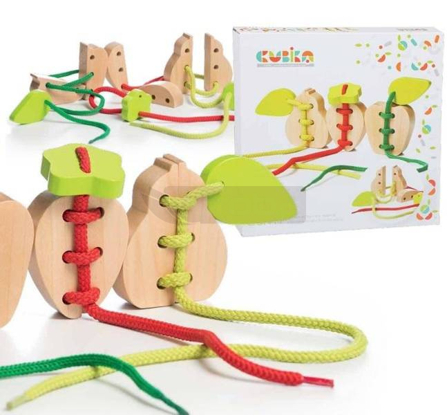 Wysokiej jakości zestaw z ekologicznego, naturalnego drewna. Będzie wspaniałym prezentem zarówno dla chłopca, jak i dziewczynki. Świetny zestaw do odkrywania różnych owoców. Musisz umieścić wszystkie figurki na linie przez otwory. Zabawka ma idealny rozmiar dla małych dziecięcych rączek, tak aby dziecku było jak najbardziej komfortowo się z nim bawić. Idealnie wyszlifowana, całkowicie bezpieczna dla niemowląt. Pokryte nietoksyczną farbą. Zabawka przyczynia się do rozwoju wzroku, dokładności, umiejętności motorycznych i wyobraźni. Dla dzieci od 3 lat i starszych.