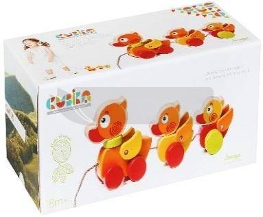 Drewniana zabawka wykonana jest z drewnianych elementów. Dzięki tej zabawce dzieci rozwijają koordynację ruchową, równowagę oraz wzmacniają mięśnie. Gdy zabawka jedzie z tyłu, maluchy opanują przestrzeń za plecami. Wymyślając różne historie z gier, dzieci poprawią swoją wyobraźnię, fantazję i zdolności motoryczne. Ta zabawka Wędrujące kaczątka pomoże Twojemu dziecku rozwinąć małą motorykę i percepcję sensoryczną.