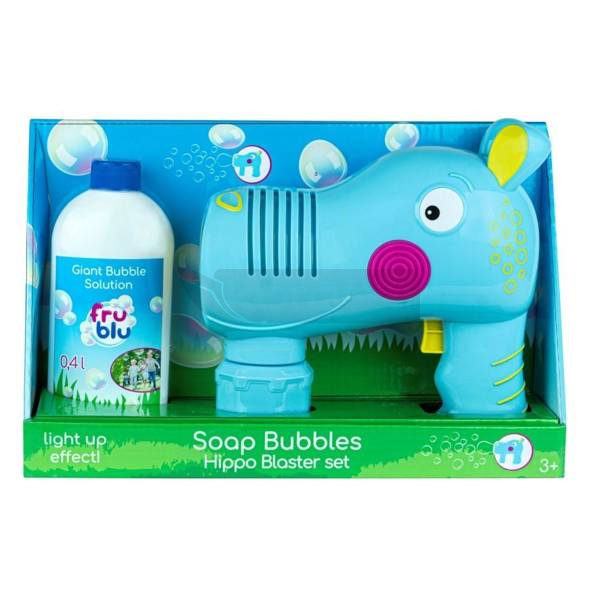 Zestaw Hippo Blaster ma przyjazny wygląd i jest bardzo funkcjonalny. Urządzenie jest łatwe w obsłudze, daje efekt świecenia i zabezpiecza przed rozlaniem płynów. Zestaw zawiera Hippo Bubble Blaster oraz butelkę 0,4 l z płynem do uzupełniania bąbelków. Wymagane baterie: 3 x AA Baterie nie są dołączone do zestawu. Zabawka przeznaczona jest dla dzieci powyżej 3 roku życia.