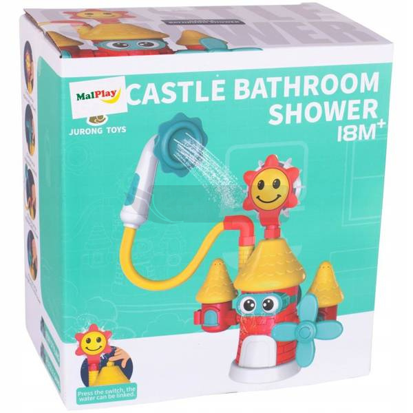 Wejdź do królestwa wodnej zabawy i odkryj wszystkie jego niespodzianki! Ten kolorowy zamek umożliwia zabawę aż na 4 różne sposoby, a to za sprawą dołączonych do zestawu końcówek, które można zamieniać ze sobą miejscami. Każda z końcówek tryska wodą w inny sposób. Znajdziemy tu uśmiechnięte słoneczko, wiatraczek oraz dwie końcówki prysznicowe, krótszą i dłuższą, z wężykiem. Wszystko co musisz zrobić to umieścić zabawkę w wodzie, aby była zanurzona na głębokość ok. 6cm i nacisnąć przycisk, znajdujący się na szczycie największej wieży. Przekonaj się jak wesoła może być kąpiel!