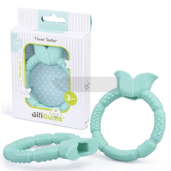 Gryzak w pięknym, pastelowym kolorze z pewnością przypadnie do gustu każdemu stylowemu bobasowi! Wygodny kształt obręczy ułatwia chwytanie gryzaka, a zróżnicowane faktury, znajdujące się na jego powierzchni, przyniosą ulgę w ząbkowaniu, delikatnie masując dziąsła malucha.