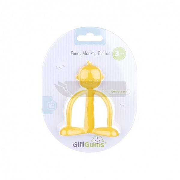 Żółciutki, silikonowy gryzaczek w kształcie małpki zabawi bobasa i rozmasuje obolałe dziąsełka! Wszystko za sprawą praktycznych wypustek, które zdobią zwierzątko. Wygodne otwory ułatwią małym rączkom chwytanie gryzaka.