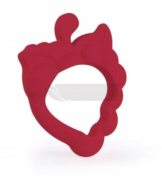 Soczyście czerwona truskaweczka przyniesie ulgę w ząbkowaniu, a jej energetyczny kolor wprawi malucha w pozytywny nastrój. Gryzak wykonany jest w 100% z bezpiecznego silikonu, dzięki czemu bez trudu utrzymasz go w czystości. Truskawkę zdobią wypustki, które podczas gryzienia delikatnie masują obolałe dziąsła malucha.