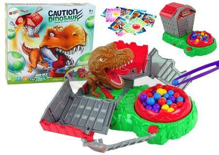 Gra Zręcznościowa Ostrożnie Dinozaur Jaja Super gra zręcznościowa, która trzyma w napięciu oraz ćwiczy zręczność. Spróbuj zebrać jak największą ilość jaj dinozaura, zanim on Cię złapie. Sprawdź, jaką masz sprawność manualną. Świetny prezent dla dzieci, który rozwija je wielopłaszczyznowo i do tego daje dużo radości i frajdy. Pozwoli spędzić więcej czasu z rodziną i przyjaciółmi, ucząc jednocześnie celności, precyzji i rozwijając koordynację ruchową. Gra zręcznościowa przeznaczona dla 2-4 graczy. Zabawa polega na tym, aby najszybciej zebrać jaja dinozaura. Zadanie nie jest takie łatwe, nie wiadomo, w którym momencie dinozaur wyskoczy ze swojej kryjówki i Cię złapie ! Jak grać? W pierwszej kolejności należy podzielić między siebie szczypce i karty. Każdy losuje jedną kartę, na niej znajduje się kolor jaja i liczbę kwiatów, która reprezentuje uzyskany wynik, jeśli złapiesz jajo. Plansza zaczyna się kręcić, co jest jeszcze większym utrudnieniem. Musisz wykazać się refleksem i precyzją, aby złapać jajo za pomocą szczypcy. Wygrywa ten, który zdobędzie najwięcej punktów i jaj, oczywiście, jeśli nie zaskoczy go dinozaur! Elementy zestawu: - plansza - klatka - dinozaur - 24 karty - 7 jaj z każdego koloru - szczypce x 4 Wymiary gry: 26 cm x 14 cm x 15 cm Wymiary opakowania: 34 cm x 31 cm x 9 cm Gra przeznaczona dla 2-4 osób. Dla dzieci powyżej 5 roku życia. Zgodna z normą EN71 i certyfikatem CE. Zasilana trzema bateriami 1,5 V AA, brak w zestawie.