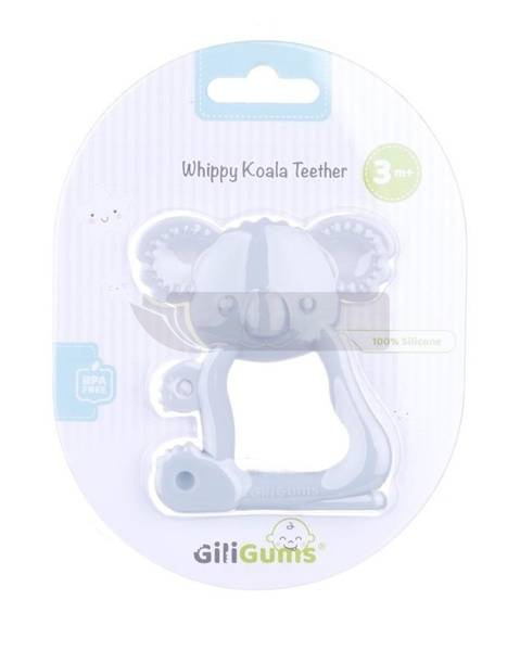 Uroczy, silikonowy koala posiada otwór w brzuszku, co ułatwia małym rączkom chwytanie gryzaka. Zdobią go wypustki o zróżnicowanym fakturach, które delikatnie masują dziąsła dziecka, przynosząc ulgę w ząbkowaniu.