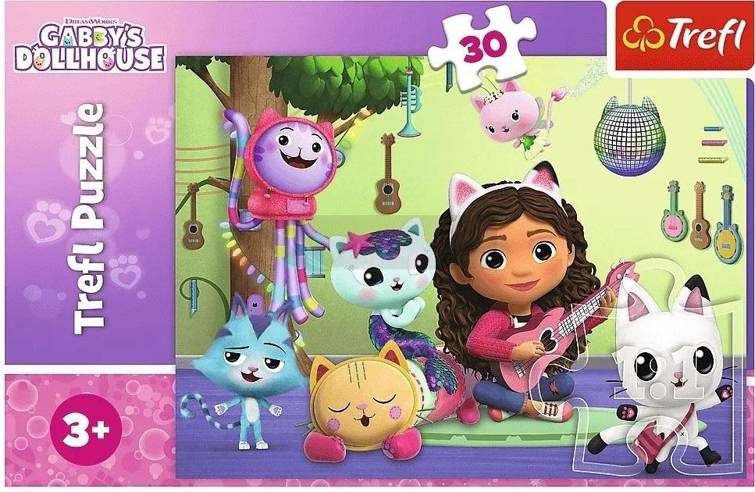 Gabi i jej uroczy domek to 30 elementowe puzzle od Trefl z motywem bajki "Koci Domek Gabi". Puzzle przedstawiają Gabi i Koty w uroczym domku.