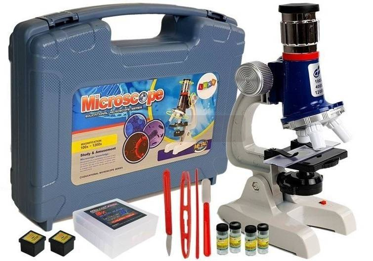Duża Walizka Naukowca Mikroskop Dziecięcy Edukacyjny 100x 400x 1200x Twój mały naukowiec będzie mógł od dziś badać przyrodę w każdym miejscu, dzięki przenośnej walizce w której będzie miał cały niezbędny zestaw. Świetny sposób, aby wprowadzić dziecko do świata nauki i przyrody. Będzie mógł odkryć jak wygląda w powiększeniu obrazek w gazecie, liść bądź Twój palec lub włos. Posiada regulację ostrości. Z mikroskopem codzienne przedmioty, odsłonią tajemnice małego świata i mikrobiologii. Dużą zaletą jest powiększenie sięgające aż 1200 x Cechy charakterystyczne: - Wysoka jakość wykonania - regulowaną wysokość obiektywu - obrotowy obiektyw z soczewkami dającymi powiększenie 100x 400x 1200x - platforma na oglądane obiekty - źródło światła z regulacją odległości - włącznik światła Elementy zestawu: - mikroskop - pęseta, nożyk, łopatka, patyczek - szkiełka do preparatów 7 szt - 2 probówki - pudełeczko - gotowy preparat - 4 probówki Wymiary mikroskopu: 21 cm x 12 cm x 8 cm Wymiary opakowania: 35 cm x 31 cm x 9 cm Mikroskop zasilany jest dwoma bateriami AA 1.5V (brak w zestawie). Zabawka przeznaczona jest dla dzieci powyżej 8 roku życia. Mikroskop posiada certyfikat CE i jest zgodny z normą EN 71. Zapakowany jest w kartonik z przezroczystą witrynką, dzięki czemu nadaje się idealnie na prezent.