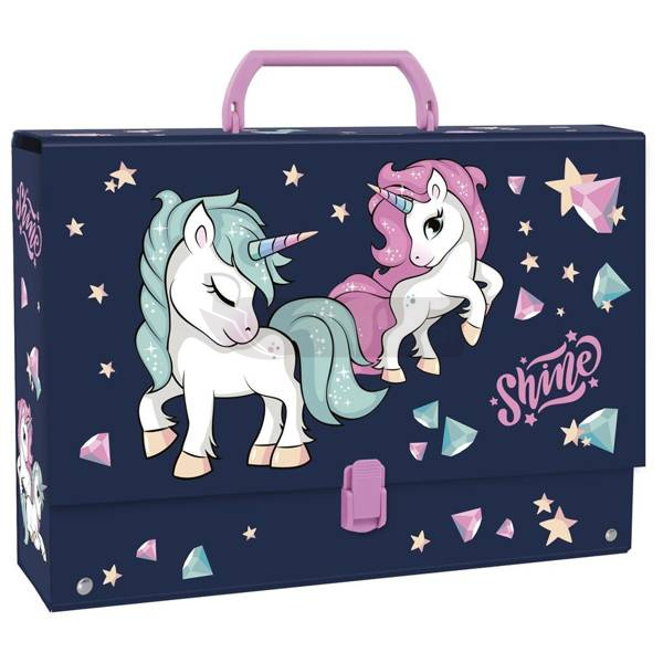 Teczka z rączką gruba 14 jednorożec DERFORM Wykonana z twardej, laminowanej tektury teczka z wygodną do przenoszenia rączką. Idealna do przechowywania większej ilości prac plastycznych oraz dokumentów.