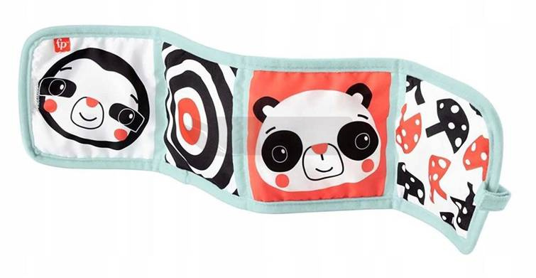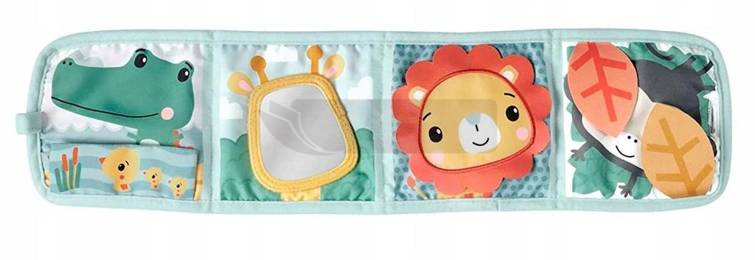 Składana książeczka do ćwiczeń i zabawy firmy Fisher-Price zawiera cztery podwójne strony, które pobudzają zmysły Twojego dziecka na różne sposoby. Boki można łatwo zmienić pozycję podczas zabawy w pozycji leżącej lub siedzącej: można je położyć płasko na podłodze, ustawić jak harmonijkę lub złożyć w kostkę. Ta miękka zabawka do aktywności zapewnia noworodkom czarno-biały wzór o wysokim kontraście, kolorowych miłośników zwierząt i możliwości zabawy z każdej strony. Książeczka to wspaniałe możliwości zabawy dla niemowląt. Zawiera lusterko, zabawę A kuku, stronę szeleszczącą, grzechotki i różne tekstury Można ją złożyć do torby i jest wyposażony w szlufkę do zamocowania na wózku dziecięcym Wspomaga rozwój motoryki drobnej i grubej oraz wzroku, słuchu i zmysłu dotykowego noworodków od urodzenia