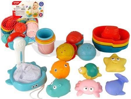 Zestaw do Kąpieli Zwierzątka Wodne Gumowe Siatka Morskie Stworzenia 17 sztuk Kolorowy zestaw morskich zwierzątek w przyjemnych pastelowych kolorach sprawdzi się zarówno w wannie, jak i w ogródkowym basenie. Jest również doskonałym rozwiązaniem dla rodziców, których pociecha boi się wody i nie lubi kąpieli - wielokolorowe, barwne rybki i inne zwierzątka z pewnością ułatwią oswajanie się z wodą w formie zabawy. Wszelkie elementy posiadają malutkie otworki, do których wpada woda, po naciśnięciu zabawki woda w zabawny sposób wystrzeliwuje z niej, co na pewno rozbawi dziecko. Można wymyślić zabawę w podjęcie próby złapania wszystkich zwierzątek w sieć, a przeszkodą za każdym razem będzie woda, która faluje i zmienia położenie zwierzątek. Siatka ma niebieską obręcz i wygodny uchwyt mieszczący się do małych rączek. Dziecko ćwiczy przez to zdolności manualne i precyzję. W skład zestawu wchodzą: - Siatka do łowienia zwierzątek - Gumowe zwierzątka: żółw, rozgwiazda, rozdymka , nadymka, rybki, hipopotam. - 4 Plastikowe kubeczki, które możemy układać jeden w drugi lub zbudować z nich wieżę. - 3 Kolorowe stateczki -Zwierzątka wchodzące w skład zestawu kąpielowego wykonane są z atestowanych, niegroźnych dla dziecka materiałów. Wymiary zestawu: siatka: 13 cm x 15 cm szerokość otworu: 10 cm długość rączki: 11 cm zwierzątka: 7 cm x 7 cm x 3 cm Wymiary opakowania: 32 cm x 20 cm x 4 cm Zabawka przeznaczona jest dla dzieci powyżej 18 miesiąca życia. Zgodna z normą EN71 i certyfikatem CE. Zestaw posiada certyfikat CE, stanowiący o bezpieczeństwie płynącym z użytkowania zabawki zarówno w stosunku do malucha, jak i środowiska. Siatka z plastikowym uchwytem jest bardzo poręczna i wygodna, co z pewnością ułatwi maluchowi zabawę. Stworzonka zostały wykonane z wytrzymałej, grubej gumy.