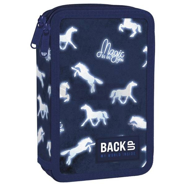 Dwukomorowy piórnik BackUP z wyposażeniem posiada: