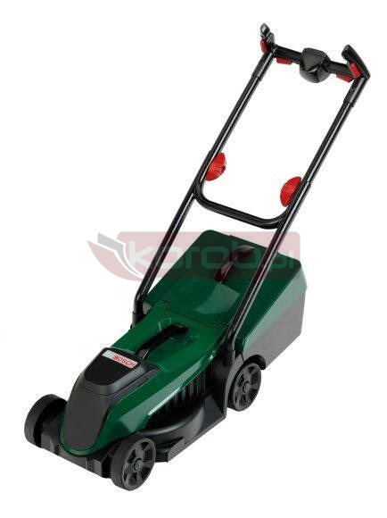 Kosiarka jest w kolorze ciemnozielonym z czarną rączką do prowadzenia i kolami. Koła są ruchome, więc kosiarka może poruszać się po różnych powierzchniach. Wnętrze kosiarki jest puste, dzięki czemu ma ona odpowiednią, niską wagę dla zabawy dzieci, a do jej ewentualnego przenoszenia na górze obudowy umieszczono specjalny uchwyt. Ważnym elementem tej kosiarki jest także zdejmowany kosz na odpady. Popularna zabawka ogrodnicza jest wyposażona w imitację elektrycznego rozrusznika umieszczonego na rączce kosiarki. Kosiarka podczas toczenia się wydaje realistyczne odgłosy terkotania, a koła przy poruszaniu dodatkowo wesoło dudnią. Czarny uchwyt w postaci rączki do prowadzenia kosiarki ma około 45 cm długości, co daje odpowiednio około 55 cm wysokości i 22 cm szerokości gotowego do zabawy sprzętu ogrodniczego. Kosiarka z pewnością spodoba się wszystkim dzieciom uwielbiającym zabawy w ogrodnika. Dzięki wysokiej jakości wykonania, zestaw będzie służyć przez długi czas.