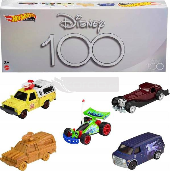 Hot Wheels świętuje 100-lecie Disneya dzięki temu zestawowi pięciu ulubionych pojazdów fanów Hot Wheel. Każdy samochód w skali 1:64 jest dostarczany w wysokiej jakości wykonaniu z kółkami Real Riders i metalową obudową. Zestaw składa się z wyboru postaci i historii DisneyPixar, jest dostępny w specjalnym pudełku i nadaje się szczególnie do kolekcjonowania. Wspaniały prezent dla fanów Disneya i kolekcjonerów zabawek.