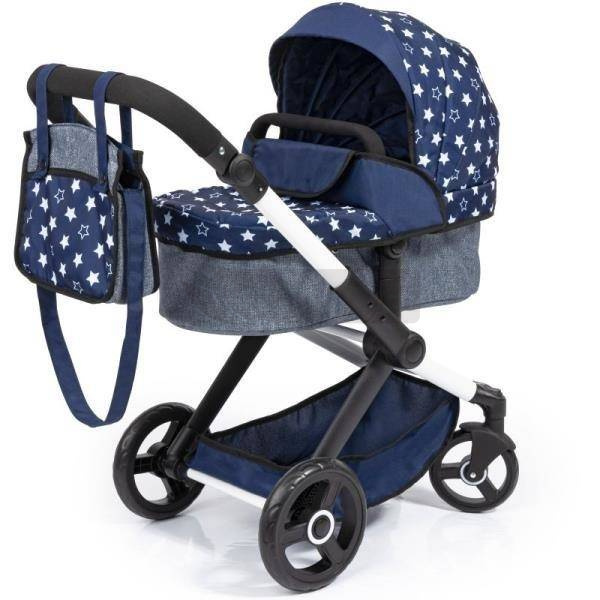 Nowoczesny wózek dla lalek kombi XEO ma elegancki wygląd i wiele różnych funkcji, odpowiedni dla lalek o wielkości do 52 cm. Dzięki regulowanej rączce wózek ten można łatwo dostosować do wzrostu dziecka. Możliwe jest również umieszczenie walizki w obu kierunkach. Ponadto Neo Vario ma odwracalny uchwyt, dzięki czemu można go łatwo przesuwać w obie strony. Dzięki dołączonym zatrzaskom i możliwej zmianie kąta przenośnego łóżeczka, wózek dla lalek można w kilka sekund zamienić na wózek spacerowy. Pokrowiec ma podwójne przeznaczenie - jeśli lalka siedzi lub leży w wózku, chroni ja zarówno przed słońcem, jak i wiatrem. Obracane przednie kola gwarantują stabilne pokonywanie zakrętów. Wymiary: 65 x 37 x 74 cm.