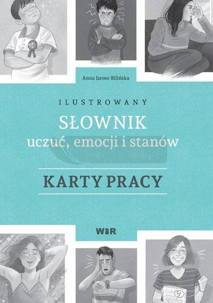 Karty pracy to uzupełnienie Ilustrowanego słownika uczuć, emocji i stanów. Ich celem jest sprawdzenie poziomu zrozumienia słownictwa związanego z emocjami, a także uporządkowanie wiedzy o nich. Różnorodne ćwiczenia, w tym zadania otwarte, zachęcają do refleksji i budowania wypowiedzi z użyciem poznanych słów.