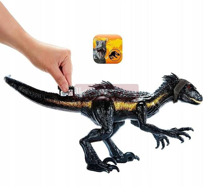 Przygotuj się na wartką akcję i przygody wprost ze świata Jurassic World! Przygotuj się na dreszczyk emocji i przygodę z tym dużym gatunkiem dinozaura Ten Track 'N Attack Indoraptor pasuje kolorystycznie do dżungli i zachwyca połyskującymi detalami, które sprawiają, że ten niesławny hybrydowy dinozaur z serii Jurassic World wygląda wyjątkowo przerażająco. Ogromne pazury i jaskrawe czerwone oczy to dopiero początek. Istnieją jeszcze inne przerażające szczegóły. Dzięki nakryciu głowy dinozaur może lepiej śledzić swoją ofiarę. Dinozaur może stać na 2 nogach lub skulić się blisko ziemi. Gdy jedno z ramion zostanie podniesione, głowica urządzenia indora obraca się w przeciwnym kierunku. Uwolnij rękę i już się napisz! Jednocześnie z lewymi i prawymi atakami bocznymi wyzwalane są również dźwięki ryku, a oczy dinozaura świecą na czerwono. Naciśnij przycisk na plecach figurki, aby aktywować atak gryzienia. Połącz się i graj! W tym celu ukryty kod toru dinozaura jest skanowany w bezpłatnej aplikacji Jurassic World Facts na kompatybilnym urządzeniu inteligentnym (nie wchodzi w zakres dostawy) w celu aktywacji wrażeń i gier AUGMENTED REALITY. Dla fanów zabawy z dinozaurami w wieku od 4 lat