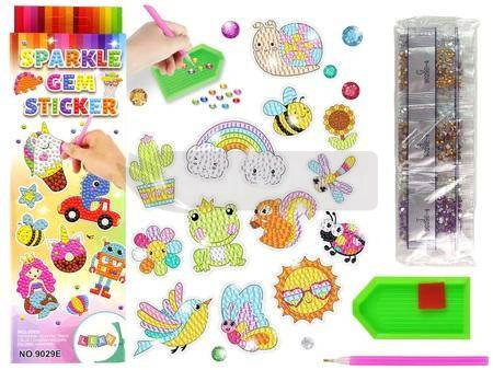 Zestaw Naklejek Haft Diamentowy Zwierzęta Ogród Tęcza Mozaika Kreatywny zestaw diamentowy to znakomita propozycja dla wszystkich miłośników prac plastycznych. Zarówno dzieci, jak i dorosłych. Nasz zestaw zawiera wszystkie niezbędne elementy do stworzenia błyszczących naklejek, które ozdobią Twój zeszyt, książki lub mebel w pokoju. To idealny produkt dla osób, które lubią tworzyć oryginalne rzeczy. Cała zabawa wymaga ćwiczenia cierpliwości, precyzji i umiejętności manualnych. W zestawie znajdziemy różne kolory kryształków, dzięki którym możemy udekorować naklejki. Powierzchnia do przyklejania diamentów pokryta jest warstwą kleju, numerki oznaczone na powierzchni wskażą jakiego koloru użyć. Układaj jeden po drugim i stwórz małe dzieło sztuki! Naklejki przedstawiają zwierzątka takie jak wiewiórka, żaba, owady, kwiaty oraz kolorową tęczę. W zestawie znajdziemy: - naklejki zwierzęta, kwiatki - opakowania kolorowych kryształków x19 ( diamenciki w różnych rozmiarach) - tackę na kryształki - sztyft - klej Wymiary naklejek: około 5 cm x 4 cm Wymiary opakowania: 26 cm x 8 cm x 3 cm Zestaw przeznaczony dla dzieci od 5 roku życia. Idealny pomysł na prezent !