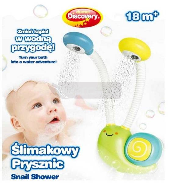 Zmień prysznic we wspaniałą zabawę z wodnym ślimakiem! Przymocuj zabawkę do ściany wanny za pomocą przyssawek, umieść w wodzie pompkę i naciśnij na ślimakową muszlę, a z oczu ślimaka tryśnie woda. Czułki wyginają się na wszystkie strony, dzięki czemu możesz zmieniać kierunek wytryskiwania wody. Zabawka wymaga użycia 3 baterii AA, baterie nie są zawarte w zestawie