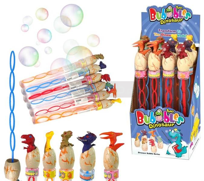 Bańki pałka z figurką dinozaura wykluwającego się z jaja.