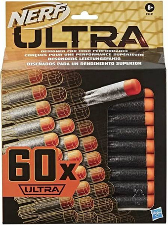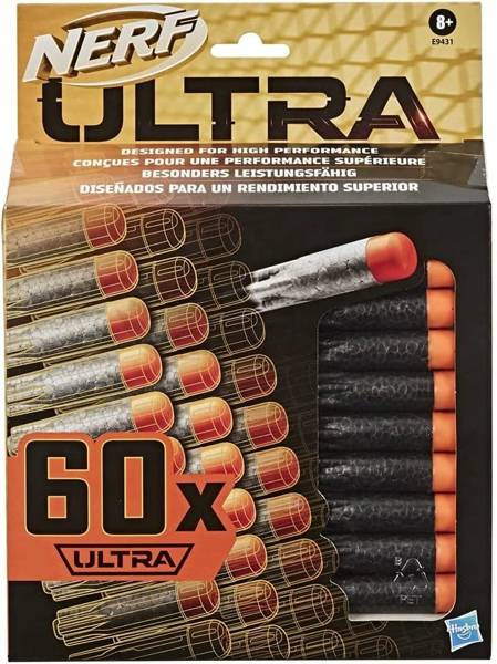 60 rzutek NERF ULTRA DARTS: zawiera 60 przełomowych rzutek Nerf Ultra z innowacyjną końcówką, technologią Fluglamellen i lekkim materiałem Nerf Ultra
