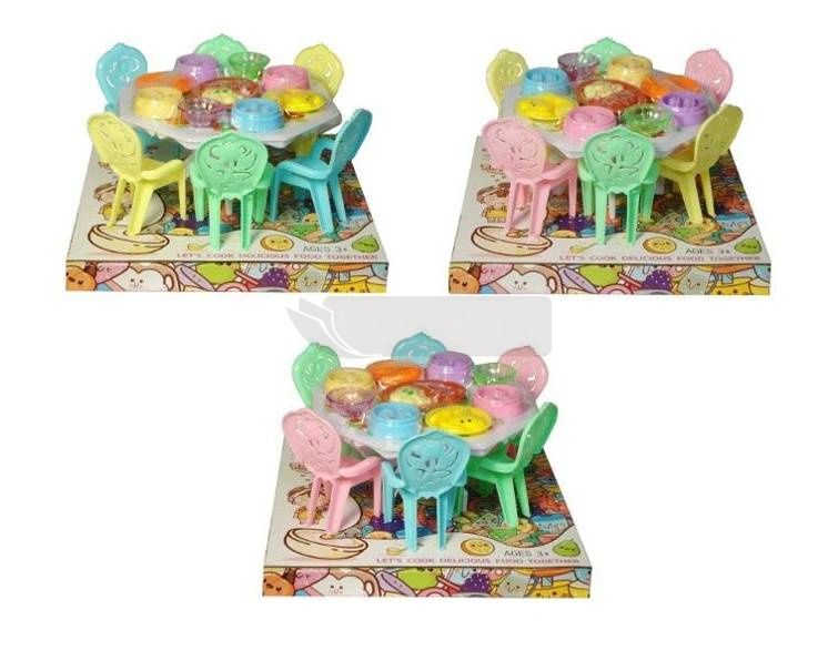 Plastikowe mebelki dla lalek w pastelowych kolorach z zestawem gotowym do zorganizowania uroczystej kolacji. Towar dostępny w kilku wersjach kolorystycznych, wybierany losowo. Cena dotyczy jednej sztuki. Produkt w opakowaniu z kartonową podstawką z przezroczystym kloszem. Podane wymiary są wymiarami zabawki w opakowaniu. Produkt dla dzieci od 3 lat.