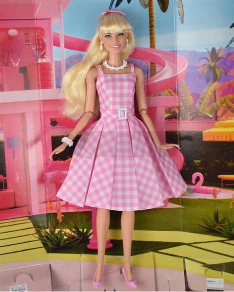 Zabierz do domu część filmu Barbie z tą kolekcjonerską lalką Barbie! Ubrana w różową sukienkę w kratkę, jest gotowa na najlepszy dzień w Krainie Barbie. Lalka Barbie ma na sobie inspirowaną stylem vintage sukienkę w różowo-białą kratkę z dopasowanym paskiem i pełną, plisowaną spódnicą. Jej długie blond włosy są ułożone w kok i przewiązane różową wstążką, co doskonale podkreśla kolczyki w kształcie stokrotek. Lalka wygląda tak samo jak Barbie z filmu z pięknym naszyjnikiem w kształcie stokrotki! Urocza różowa bransoletka i ozdobione sercem różowe czółenka uzupełniają jej wygląd. Ta ruchoma lalka jest dostępna w kolekcjonerskim opakowaniu Barbie z filmu. Sprawdź całą kolekcję, aby znaleźć więcej fantastycznych pomysłów na prezent!