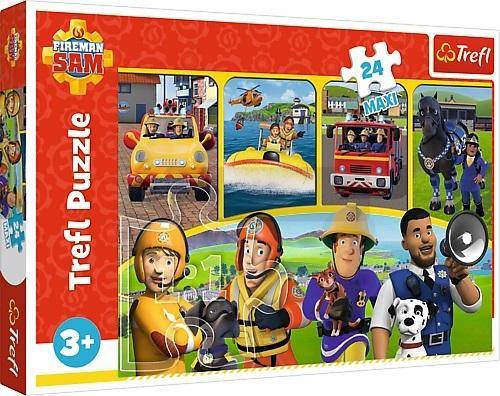 Strażak Sam i przyjaciele to puzzle składające się z 24 MAXI elementów, zaprojektowane z myślą o fanach bajki Strażak Sam. Po ułożeniu powstanie obrazek o wymiarach 600x400 mm.