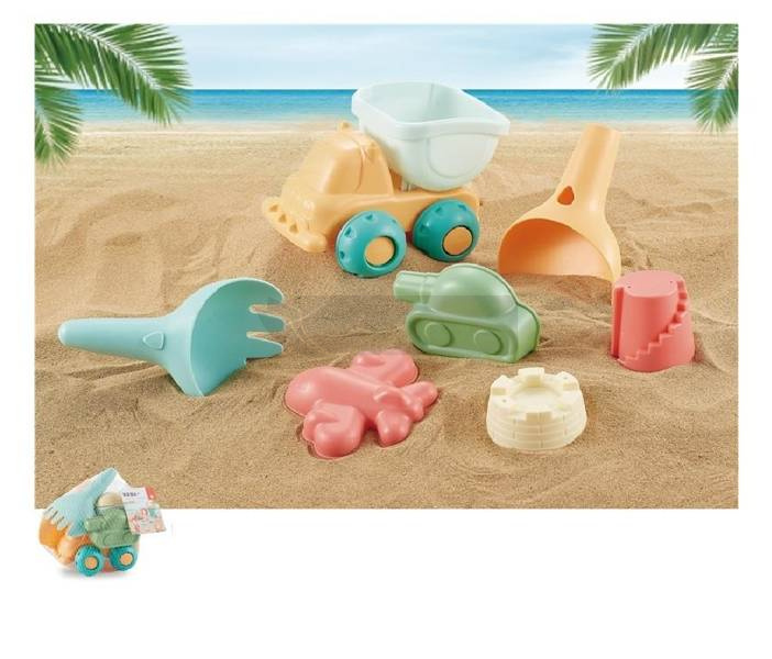 Zestaw do piasku, idealnie nadający się także na basen, do ogrodu, łazienki. Zestaw zawiera 4 foremki, autko, grabki oraz łopatkę. Wysoka jakość produktu.