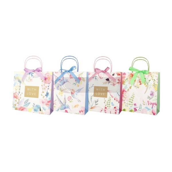 Torba prezentowa 34x34 z kokardą ptaki, kwiaty mix