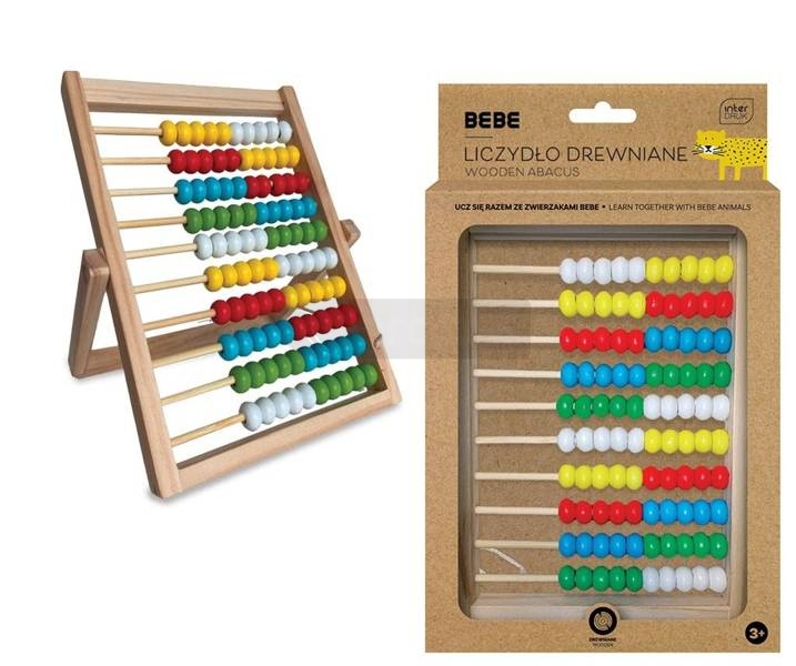Drewniane liczydło dziesięciorzędowe z rozkładaną podstawką i kolorowymi kuleczkami. Świetnie sprawdzi się podczas nauki podstawowych działań matematycznych dla najmłodszych. Ucz się razem ze zwierzakami BEBE!