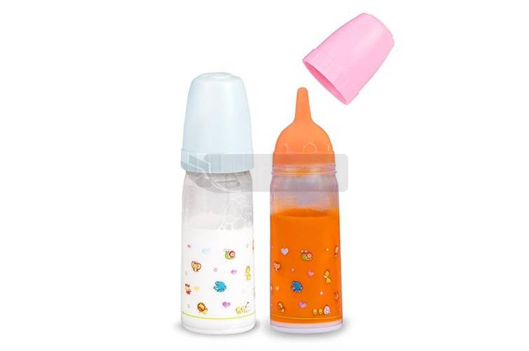 Butelka z mlekiem lub sokiem 14 cm., funkcje: przechyl butelkę a płyn zniknie, ustaw butelkę pionowo, a butelka napełni się. 3+