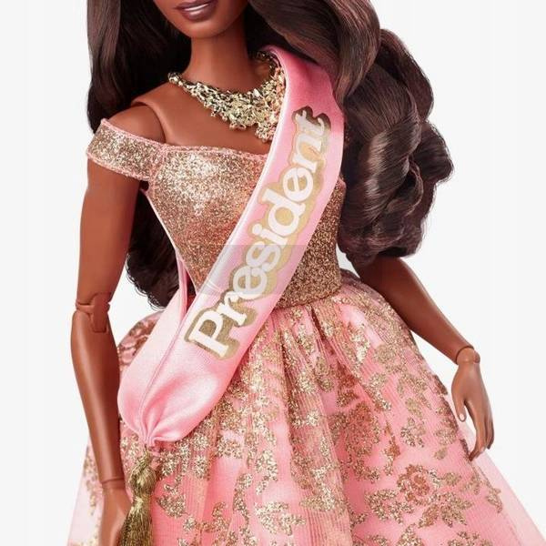 Zabierz do domu część filmu Barbie z tą kolekcjonerską lalką Barbie! Ta kolekcjonerska lalka uhonoruje Issę Rae jako prezydentkę Barbie, która promienieje swoją piękną sukienką – dzięki niej wszyscy mogą wnieść do domu film fabularny Barbie. Ta lalka Barbie nosi długą satynową sukienkę z błyszczącą górną częścią bez ramion i połyskującymi złotymi akcentami, które wiją się na spódnicy. Podobnie jak prezydentka Barbie w filmie, nosi włosy otwarte w dużych lokach i ma wspaniały łańcuszek na szyi. Ten mocny wygląd jest uzupełniony szarpą prezydencką i złotym frędzlem. Dzięki pięknu i stylowi jest gotowa rządzić światem Barbie Ta ruchoma lalka jest dostarczana w opakowaniu zaprojektowanym z motywami z filmu fabularnego Barbie, które idealnie nadaje się do kolekcjonowania. Cała kolekcja zawiera jeszcze inne fantastyczne pomysły na prezent!